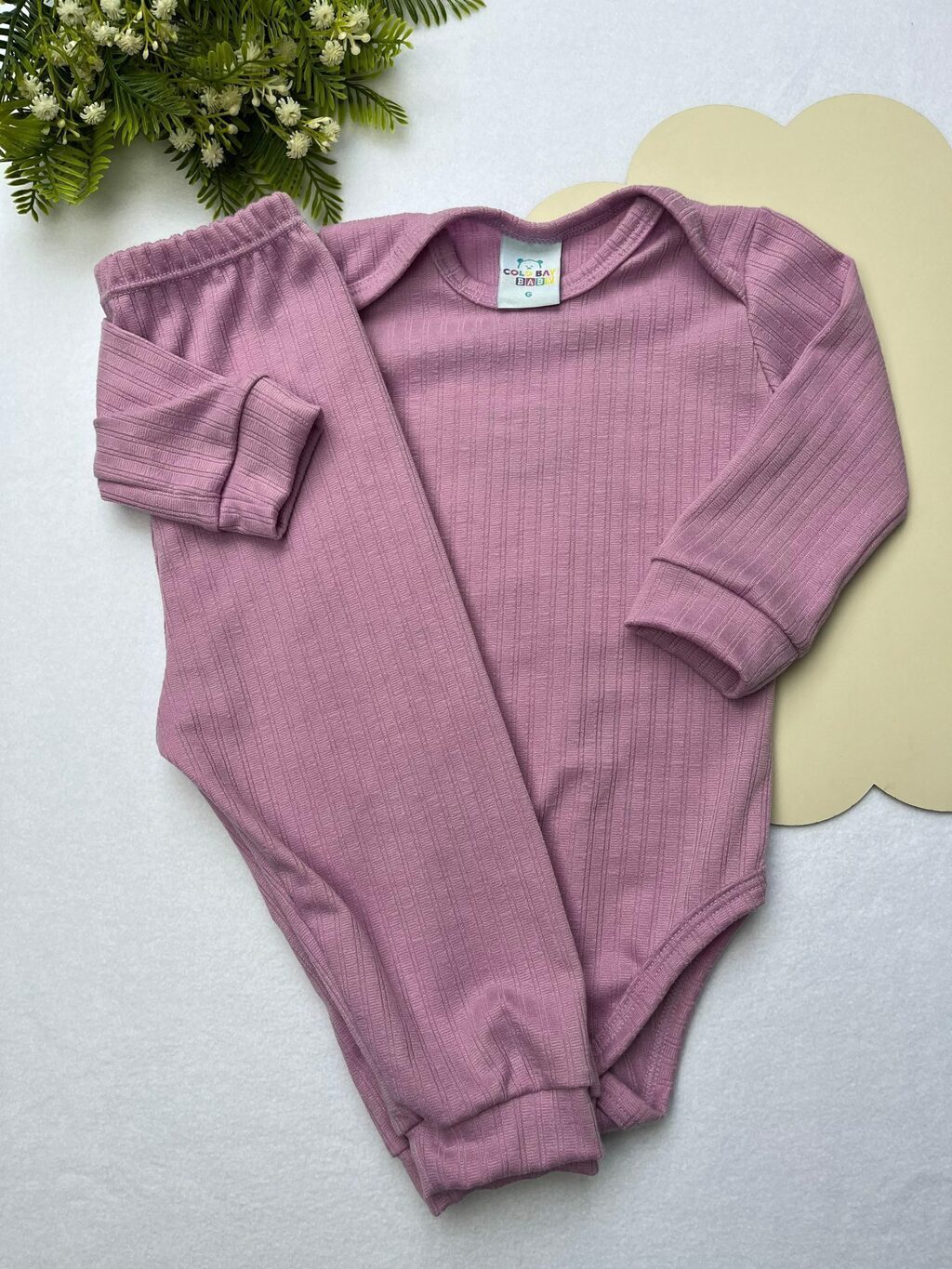 DESCRIÇÃO: Com gola em formato envelope, nosso conjunto canelado será o item mais usado no enxoval do seu bebê! Ótimo para ser usado no dia-a-dia e também como pijama, sendo muito confortável para qualquer atividade do seu filho ou filha!